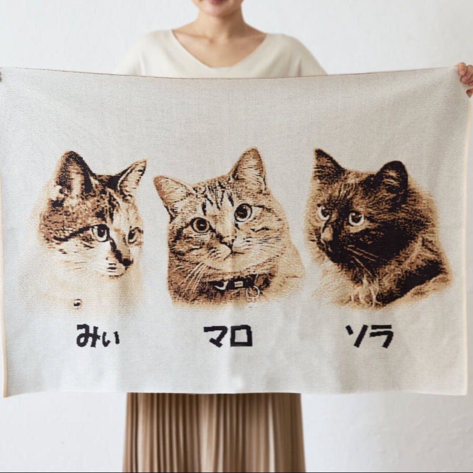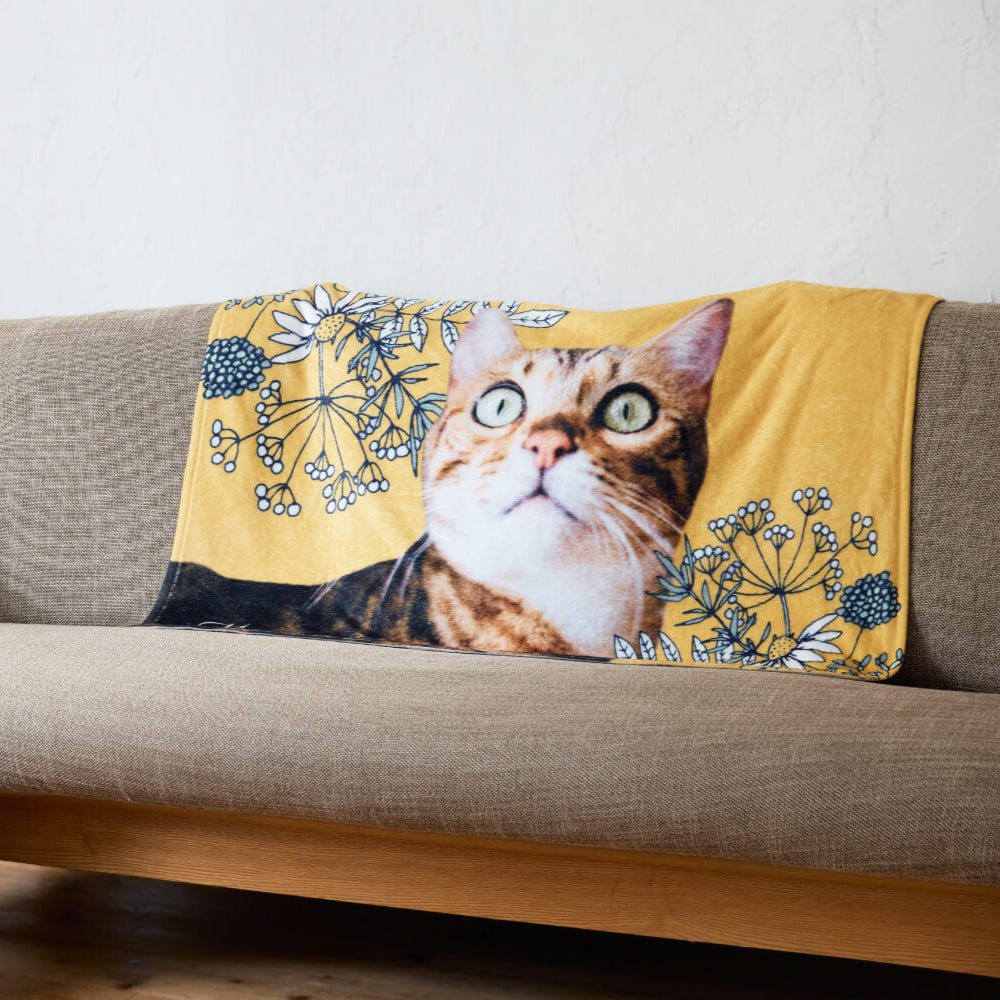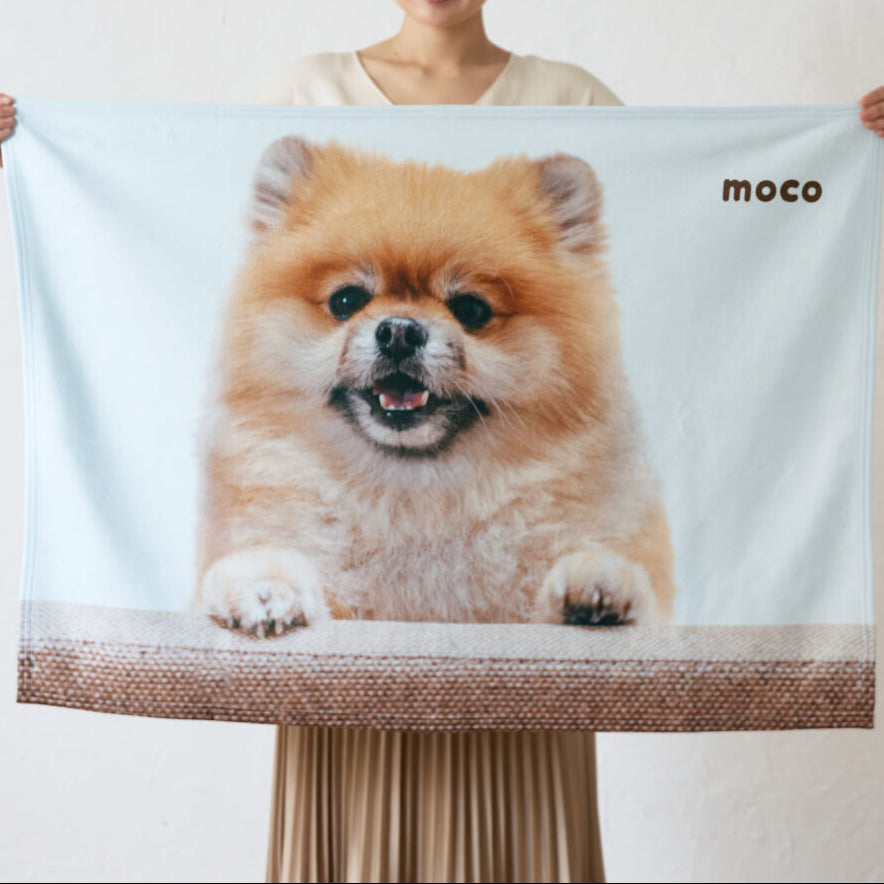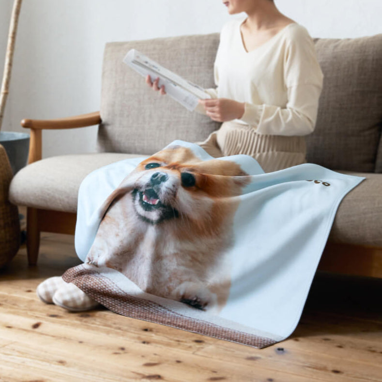 世界にひとつだけの、愛犬や愛猫の写真を両面にプリントできるオリジナルブランケットです。愛しいペットの姿と一緒に、くつろぐ時間をより特別なものにします。多頭飼いのご家族様や、愛犬・愛猫がお気に入りの方にぴったりなアイテムです。