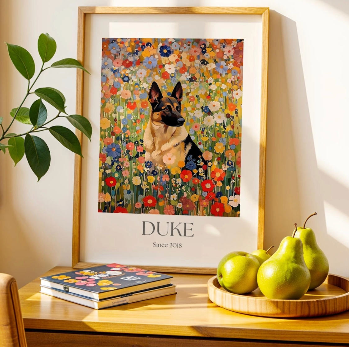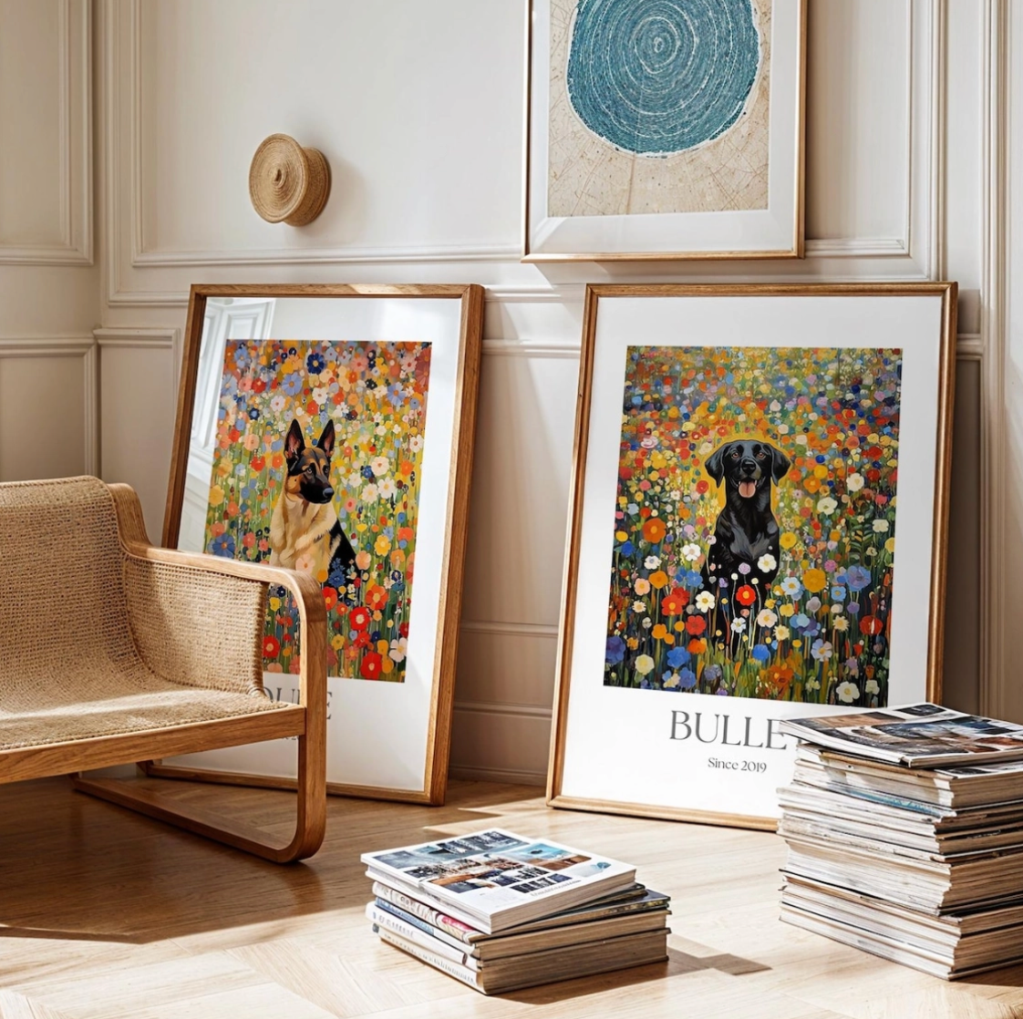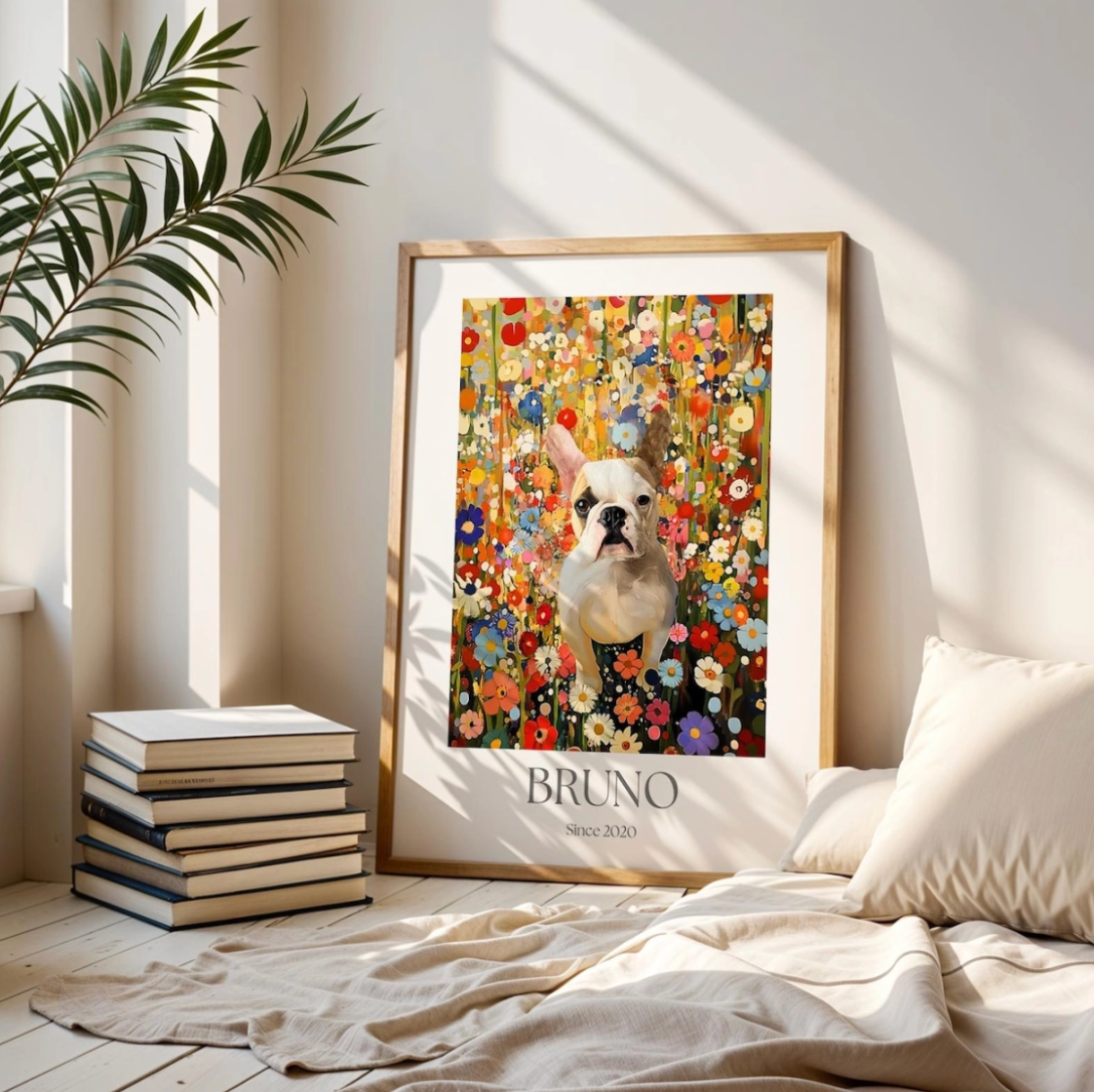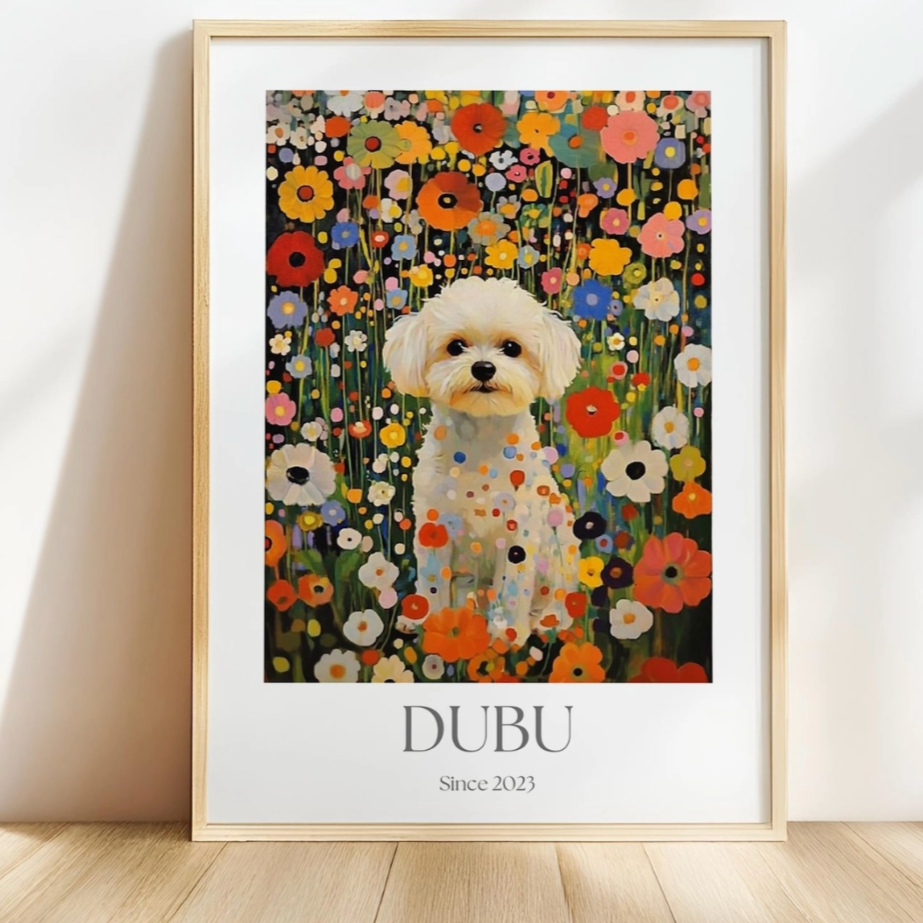 🌟カスタマイズ可 フローラルモダン風 ペット肖像画 花畑アート オリジナルプレゼント