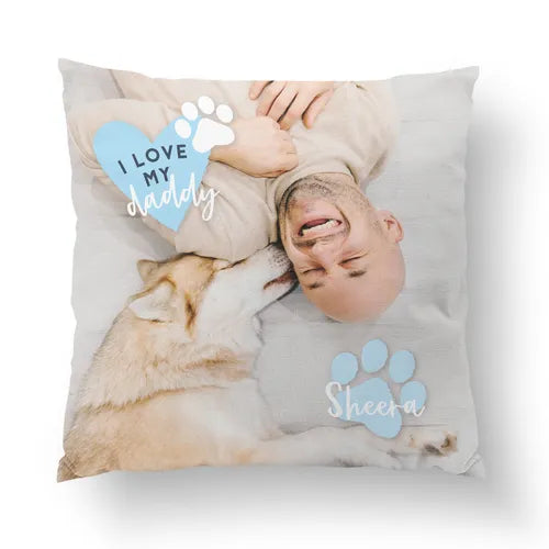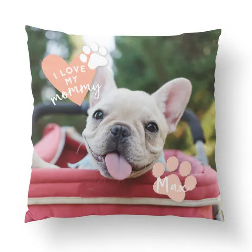 パーソナライズクッション|「I Love Daddy」「I Love Mommy」「Love is a Four Legged Word」の 3 デザインを含む