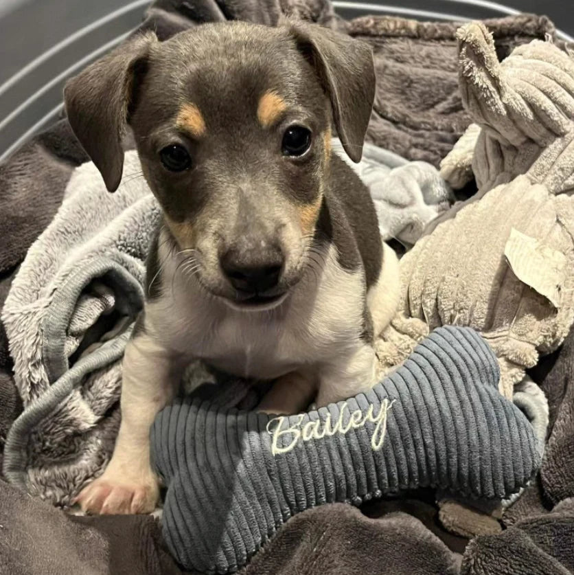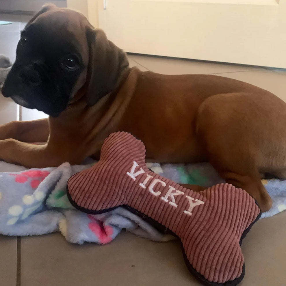 【パーソナライズ可能】刺繍入り骨形犬用おもちゃ スイーカー付き 愛犬向けギフト ドッグトイ