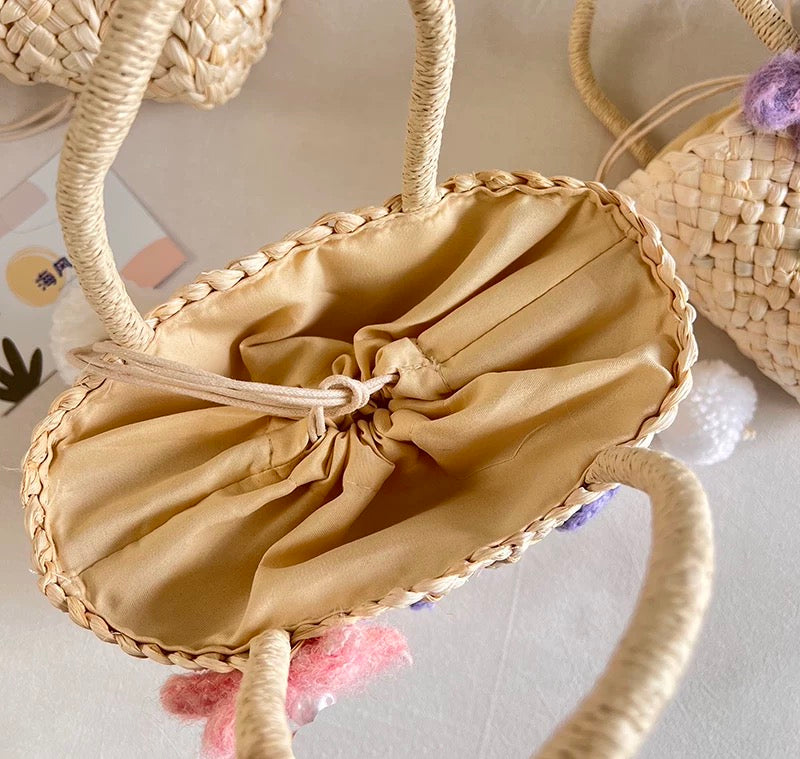 ペット名・ネームカスタム ラフ草編みハンドバッグ(コーンハス編み リボン・パールデコ 子供・大人兼用)