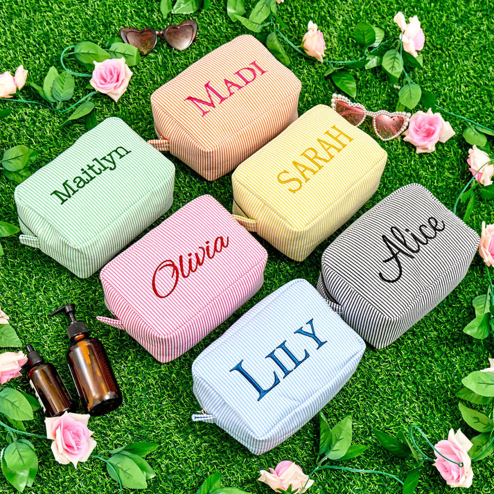 名前刺繍 オーダーメイド】化粧ポーチ ギフト / プレゼント最適 旅行用収納バッグ カスタマイズ可能
