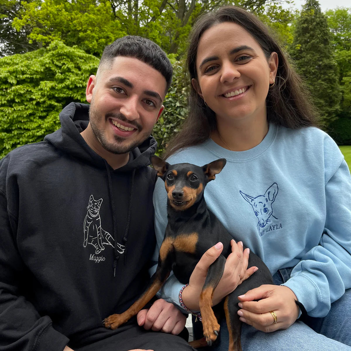 大人用ペット似顔絵カスタマイズフーディー - 愛犬・愛猫刺繍パーソナライズパーカー