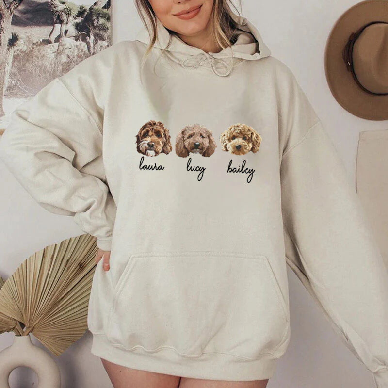犬/猫/ペット/子供の写真 アバター を入れたカスタマイズされた長袖スウェットシャツ 帽子のシャツ